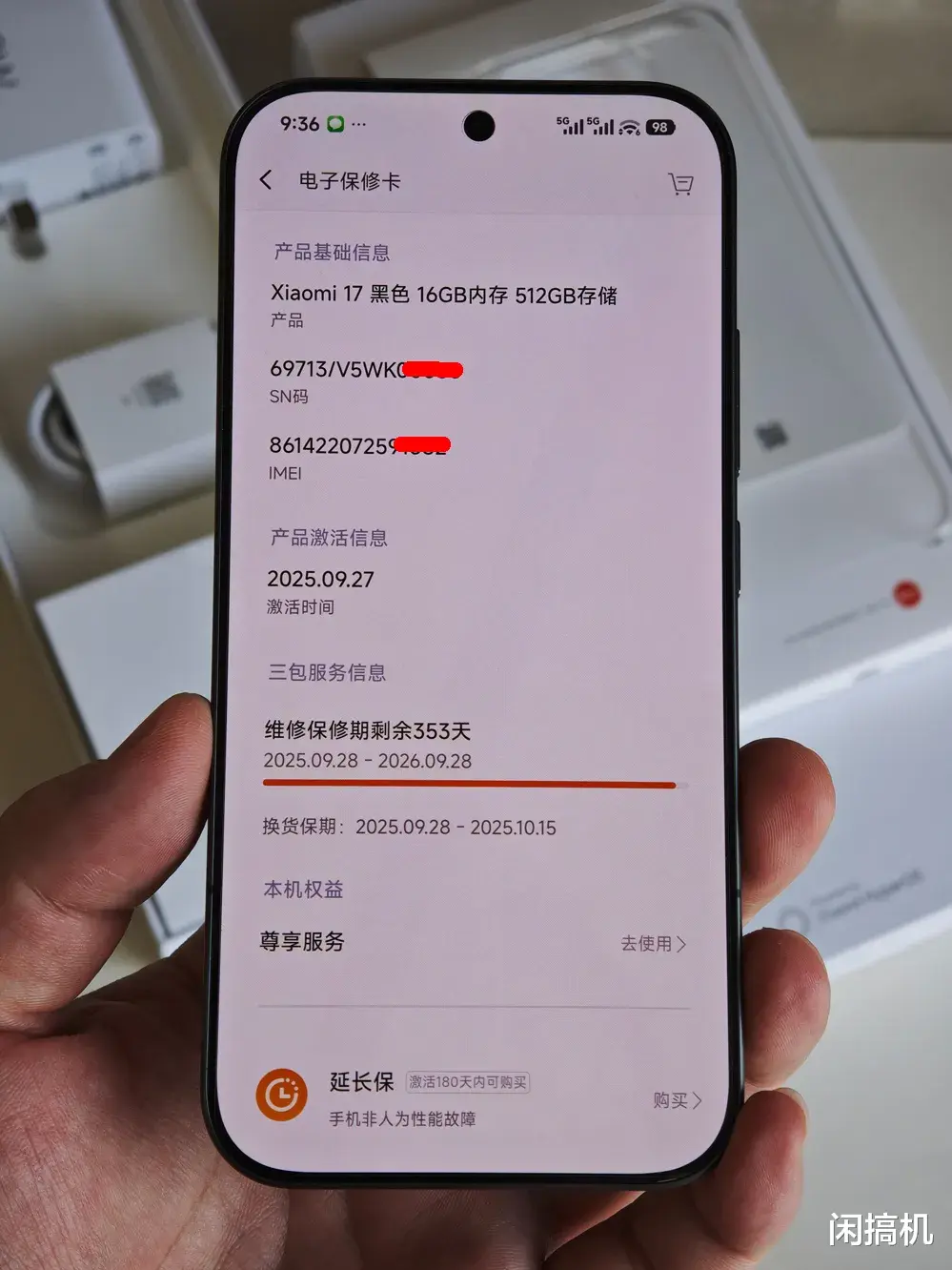 这台小米17是9月27日激活的,保修期还剩353天,心态好点就当全新对待。去年我在闲鱼买小米15准新机便宜了550元(点我回顾),但带2年保修。