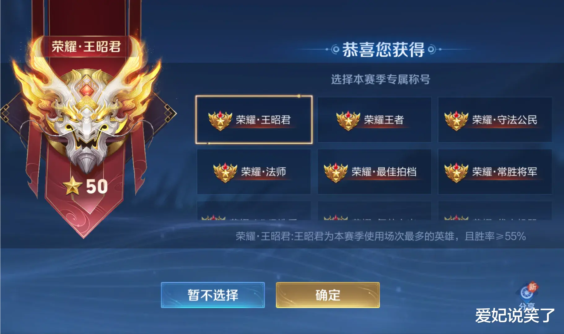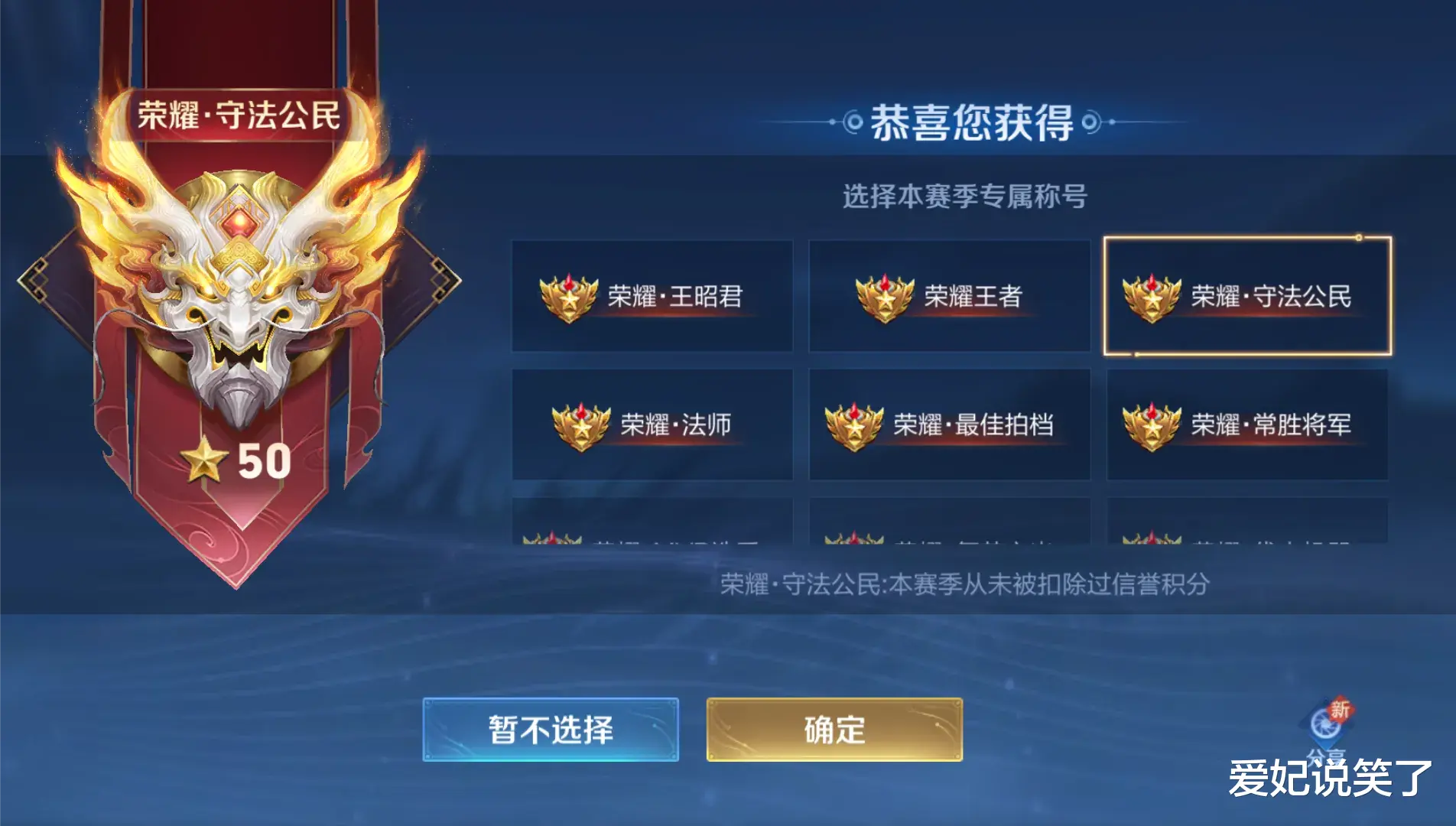 而称号一经选定,本赛季就不得更改了,如果你没有想好,你可以先不选,等到后面想好了再选择。