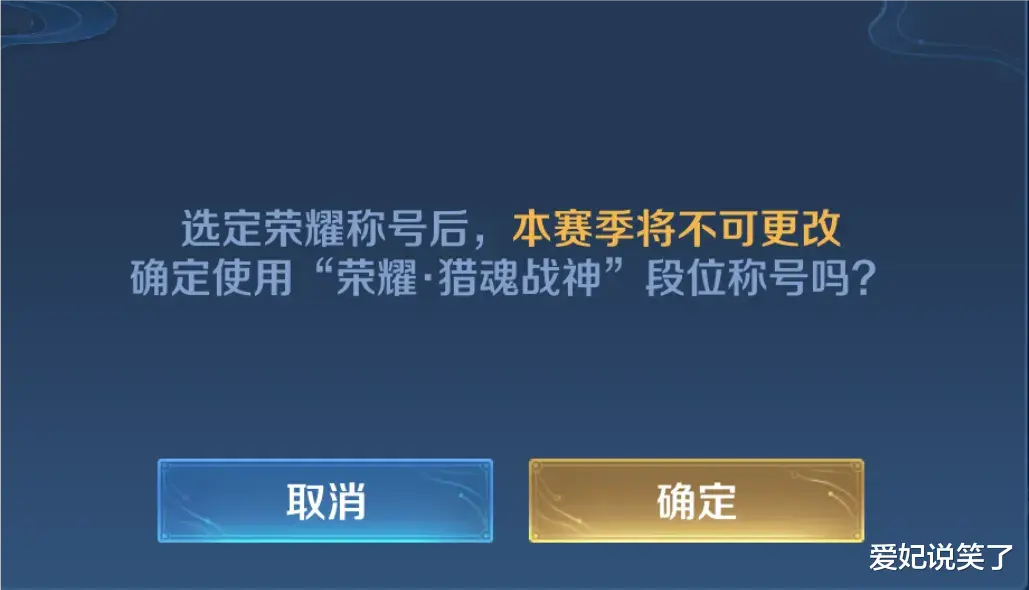 我们一个赛季有两种称号,一个是50星荣耀王者的称号,还有一个100星传奇王者的称号,但是传奇王者你就没有自主选择权了,你会直接继承你荣耀称号。