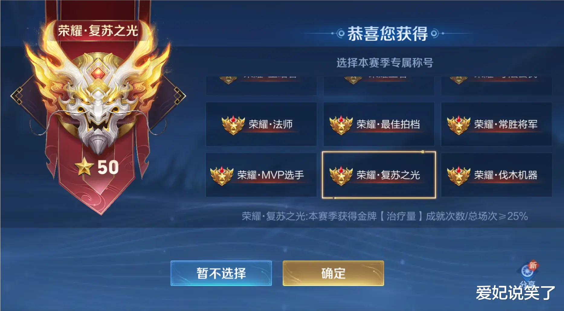 所以在选择荣耀称号的时候,还是要想好你要用一个赛季呢。