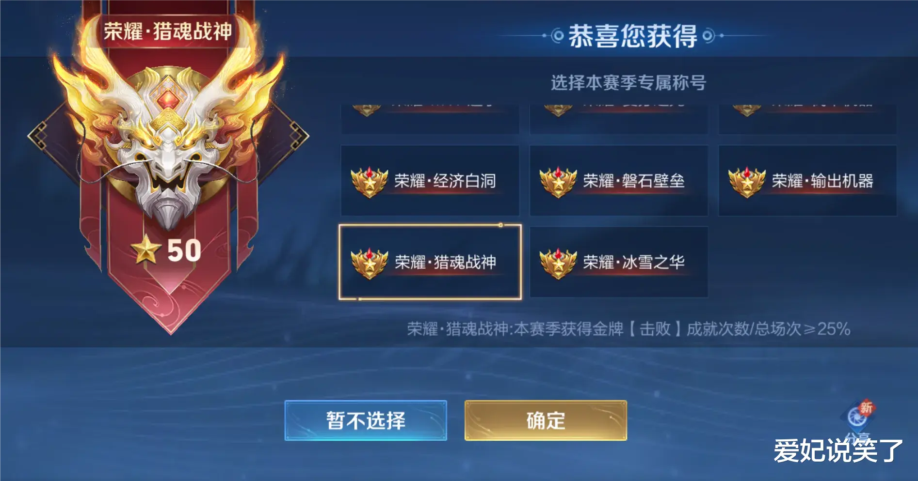 也就是说你的金牌率超过25%,而在金牌系列当中有一个猎魂战神,这个称号你是不是觉得不太常见?