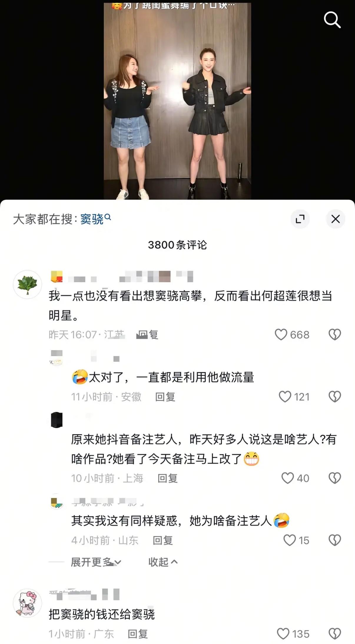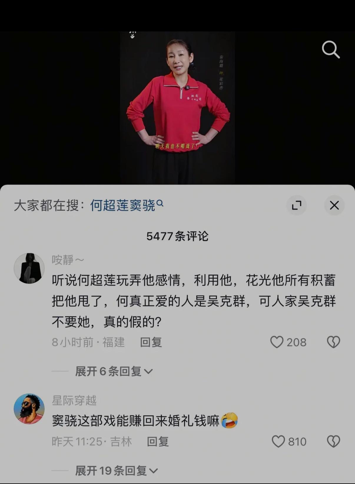 还有网友让何超莲还窦骁钱,真是到了群情激愤的地步,这样下去,何超莲别说事业了,离婚再找对象都难啊!