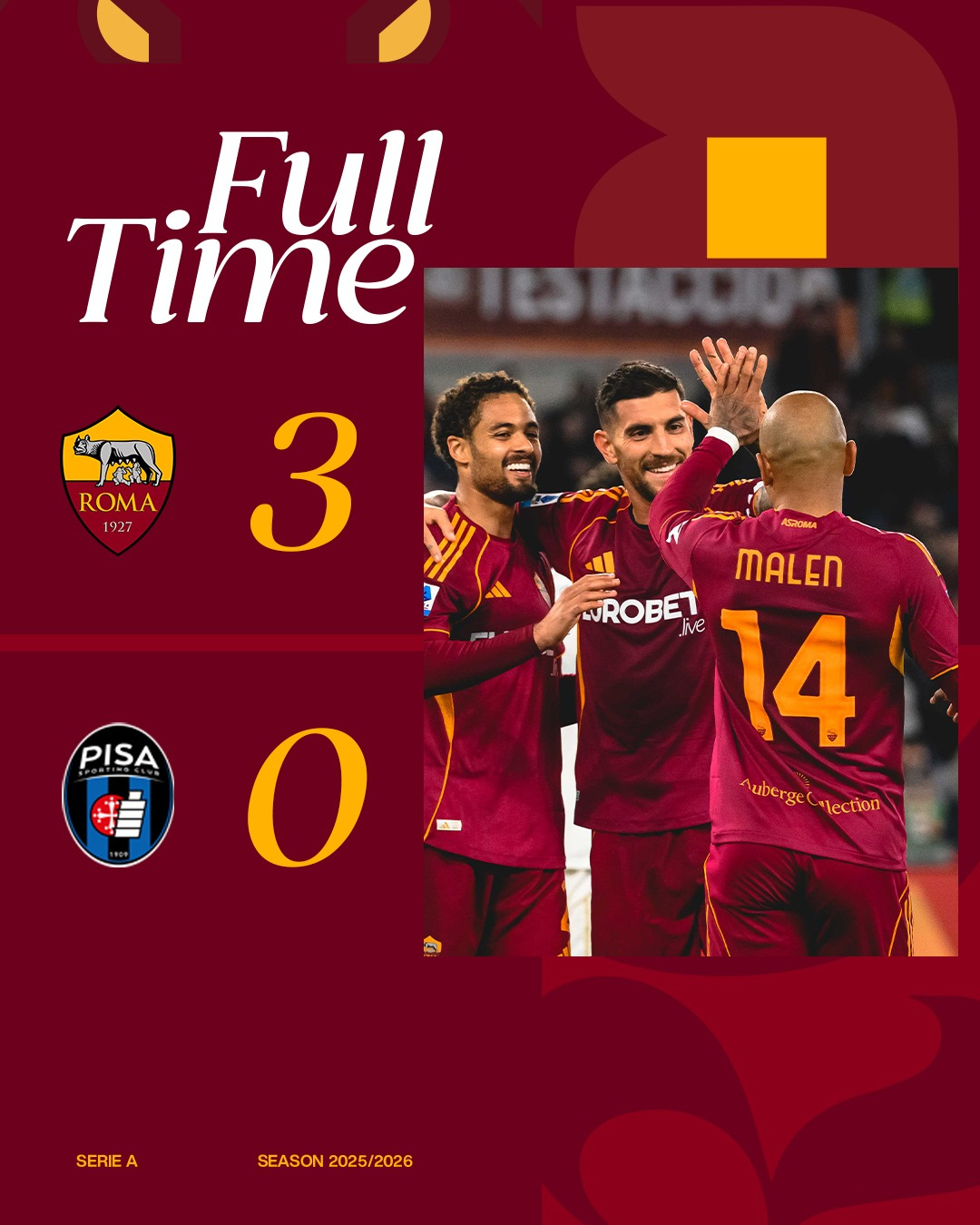 白头翁好算计,在赛前新闻发布会上开喷金老板,然后罗马主场3-0轻取,客场难求一胜的比萨,帅位无忧。而荷兰前锋马伦,则是用一记干脆利落的帽子戏法,将自己的名字刻在了,本赛季意甲射手榜第三的位置,抢下了所有的风头。