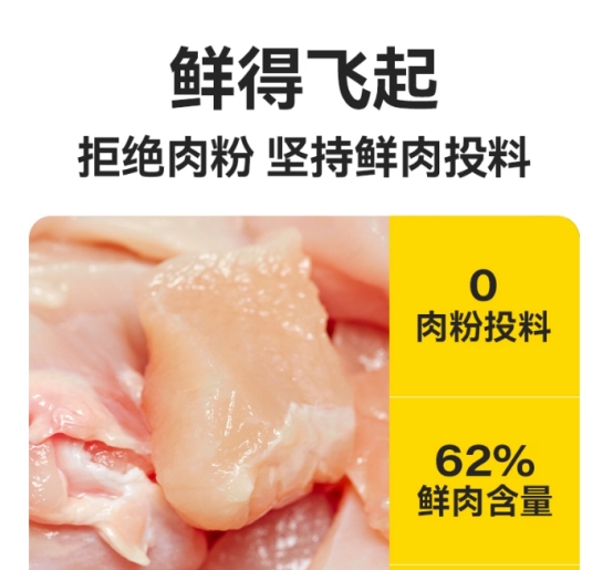 希喂的原料特别新鲜,肉源来自双汇、中粮的合作农场,当天屠宰直供+冷链直送,全程锁鲜入厂,安全又安心。75%动物性原料中有62%都是鲜鸡肉入料,人食级别鲜肉,连人都能放心吃,不添加肉粉,每一口都是实打实的肉香,爱吃肉的狗狗根本扛不住!