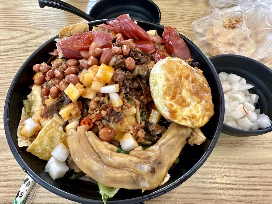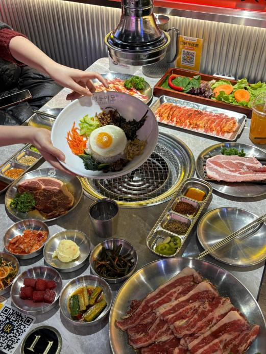 他家的冻梨绝绝汁和火山云朵拌饭里的肉都挺好吃的。厚切的肉口感更扎实,薄片肉则更适合蘸着汤汁小料吃,鲜香又滑嫩。
