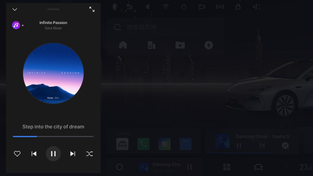 行业首发的45英寸巨幕版Flyme Auto车机系统,集成了中控与副驾屏,支持Flyme Link手车互联、小窗模式以及Smart Bar快捷操作,为用户带来前所未有的沉浸式交互体验。高通骁龙8295芯片的加入,更是让车机系统的运行流畅度与响应速度达到了新的高度。配合23扬声器的Flyme Sound音响系统,无论是观影还是听音乐,都能享受到影院级的视听盛宴。