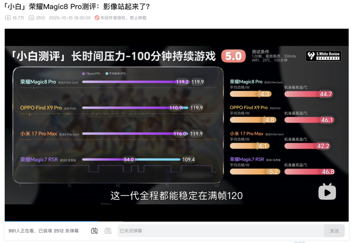 另外,笔者在查询多家专业媒体对的荣耀Magic8 Pro测试的时候发现,荣耀Magic8 Pro的续航测试一直稳居榜首。