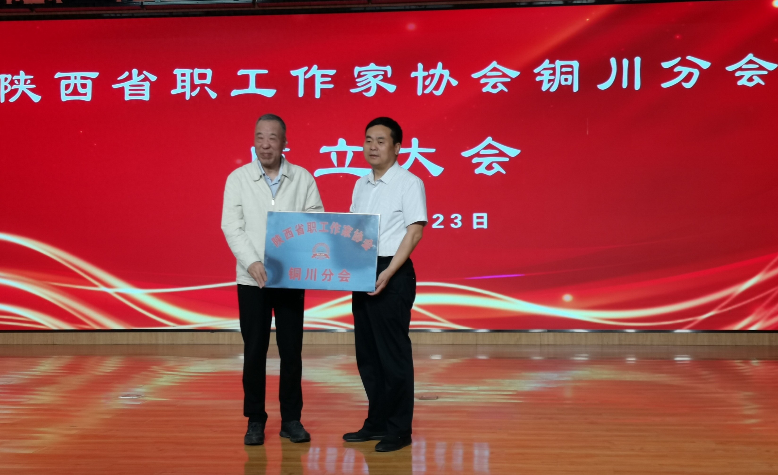 仪式上,陕西省职工作协副主席卫尚科宣读了《关于成立陕西省职工作协铜川分会的批复》,随后,陕西省职工作家协会主席周养俊向铜川分会主席王玉宝进行了授牌。