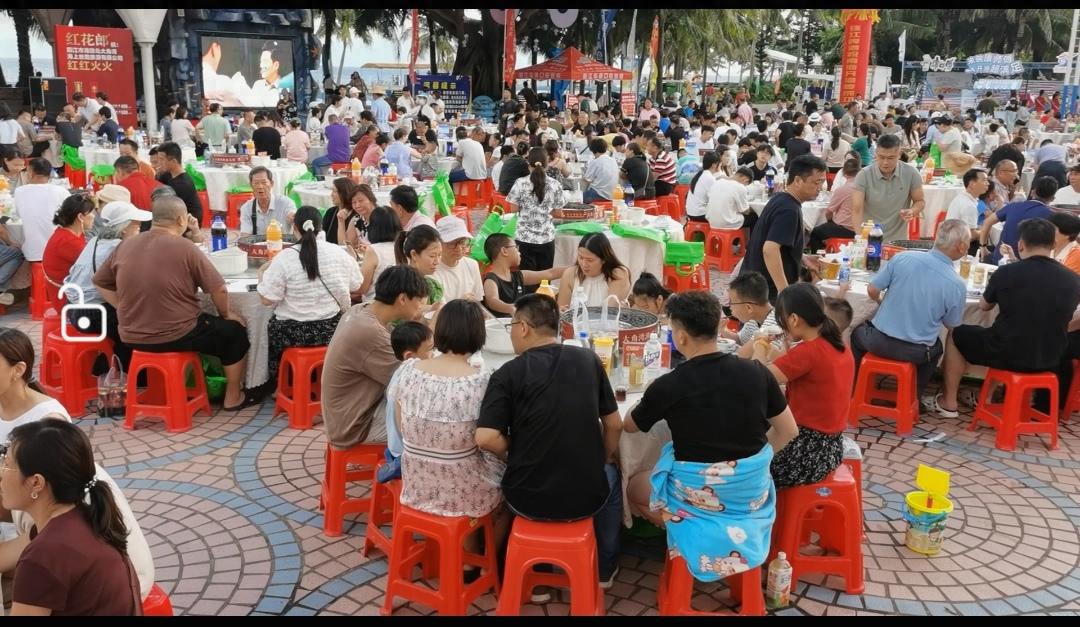 本届宴席由16家本地餐饮名店联袂打造,所有食材均取材海陵岛,菜单更由网友票选而出。其中大盆菜中包含鲍鱼、海虾、海参等十余种珍馐层层铺展,色香味俱全。席间,香浓的渔家靓汤、热气腾腾的海胆虾仁炒饭、甘甜软糯的椰汁香芋珍珠马蹄等佳肴令人食指大动。