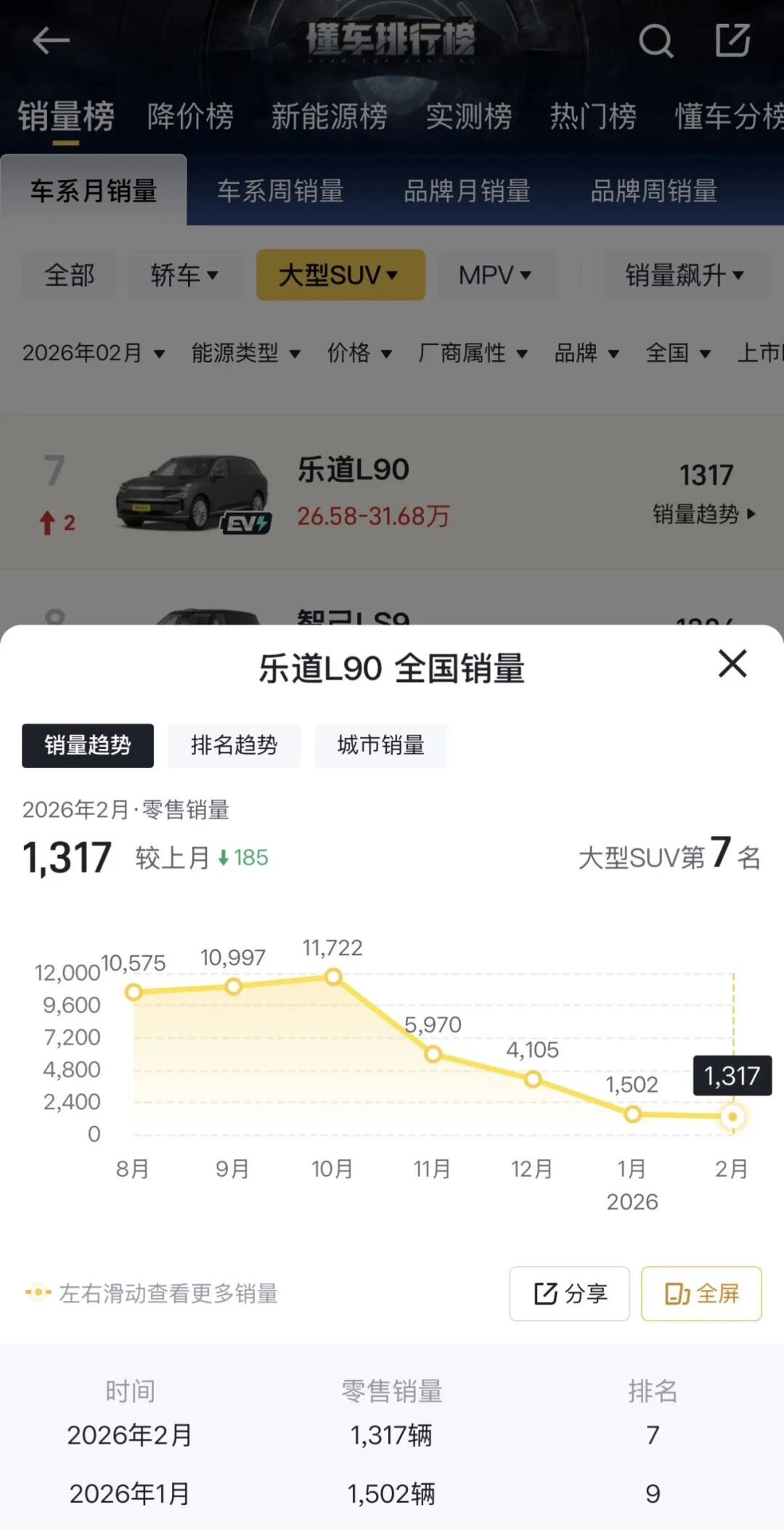 图/乐道L90近半年销量趋势