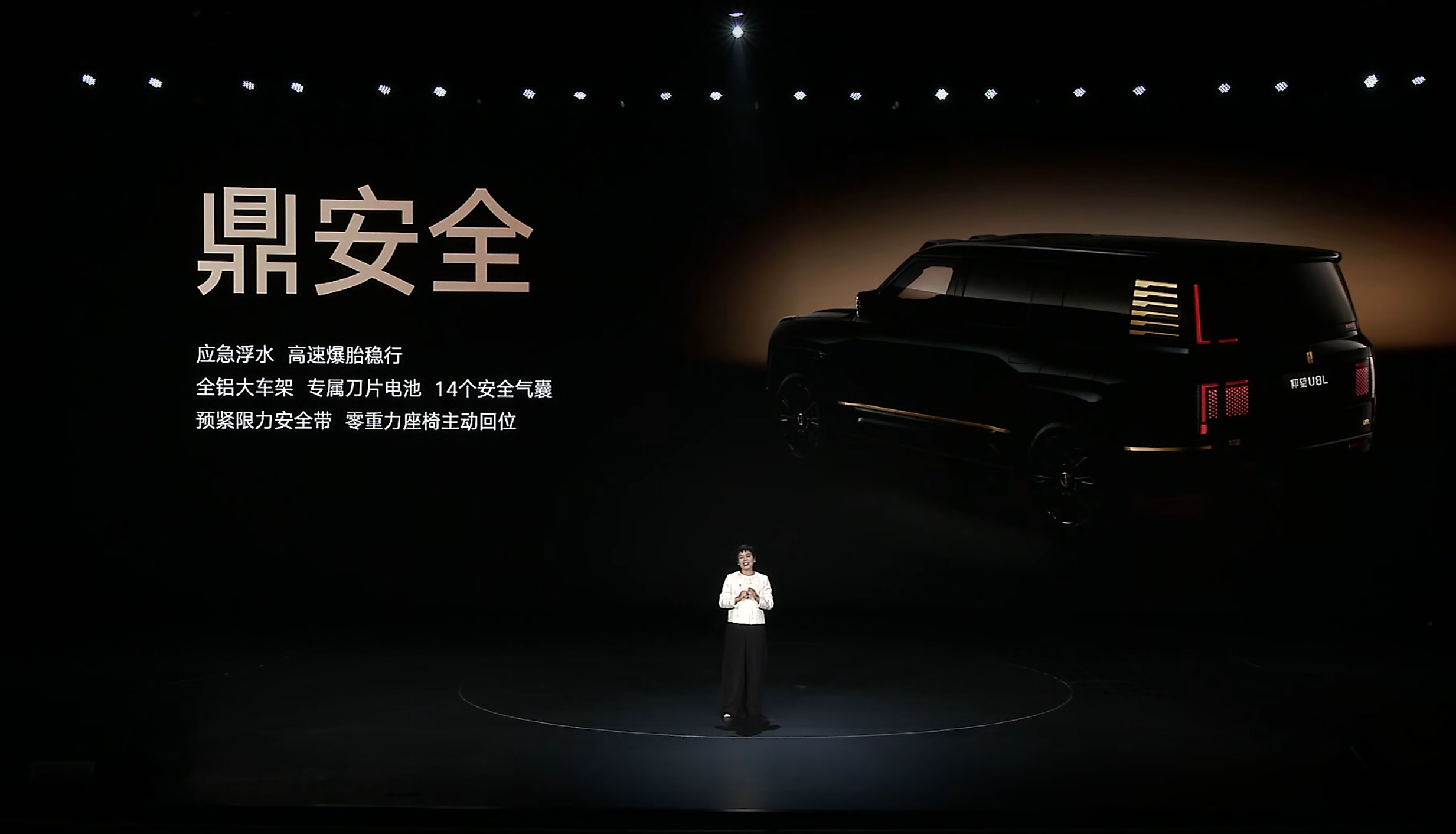除此之外,U8L鼎世版将安全黑科技注入到了每一个驾乘场景里。搭载易四方四电机独立驱动系统,U8L鼎世版与U8一样具备高速爆胎稳行、应急浮水、原地掉头、红外夜视系统等能力。有人刚听到时可能会觉得像炫技,但真遇到突发情况时,这些功能意味着可以化危险为可控,这才是豪华SUV最值得依赖的底气。