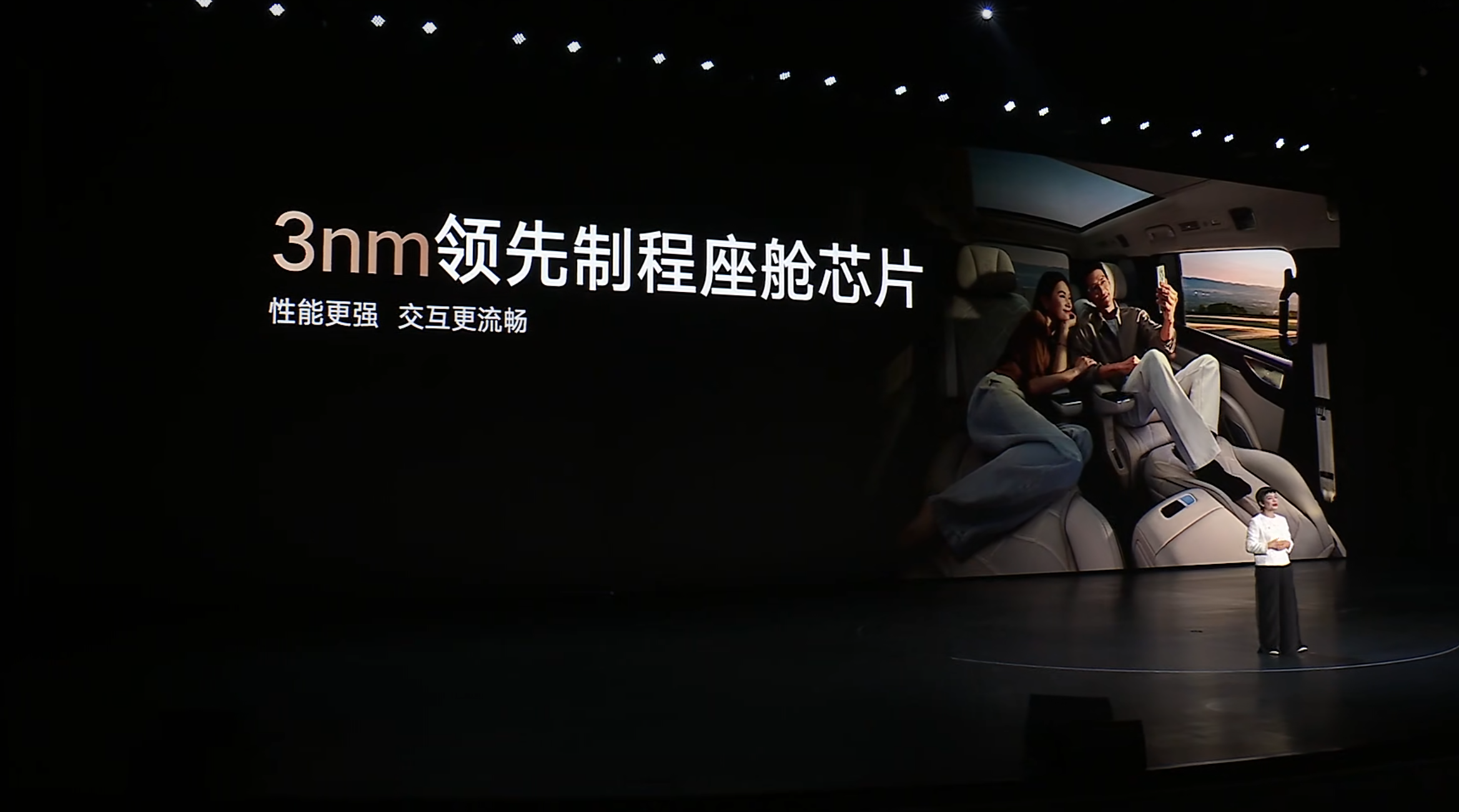 值得一提的是,它还是全球首款量产搭载3纳米智能座舱芯片的车型。这并非噱头,而是可以让车内的多屏联动、影音娱乐、导航语音等多任务并行都能保持极高的流畅度,运算更快、能耗更低,AI语音响应也更敏捷。