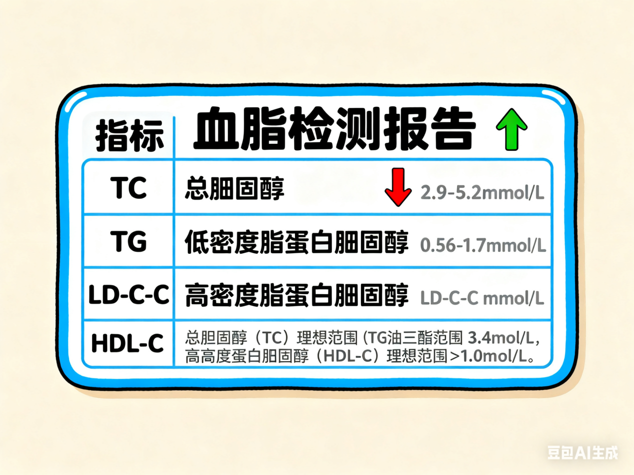 总胆固醇(TC):血液中所有胆固醇的总和,是综合判断的基础指标。