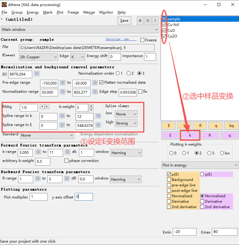 标准样品固定配位数,样品固定S2好的,到了这里Demeter对于XAFS的基本处理过程就完成了,当然Demeter还有其他的功能本文不做讲解,通过以上操作,已经可以得到论文需要的图像及数据。