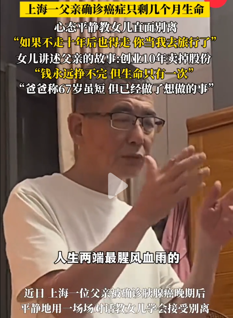 点个关注不迷路。小编就和大家一起聊聊上海一患癌父亲生命进入倒计时,对女儿的一番开导。