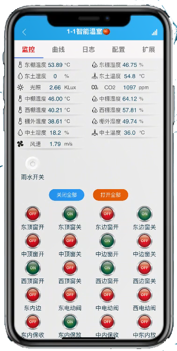 通过手机APP、电脑云平台,随时随地查看棚内温度,远程手动/自动切换,一键启停风机、遮阳、加热、通风等设备,不受距离限制。