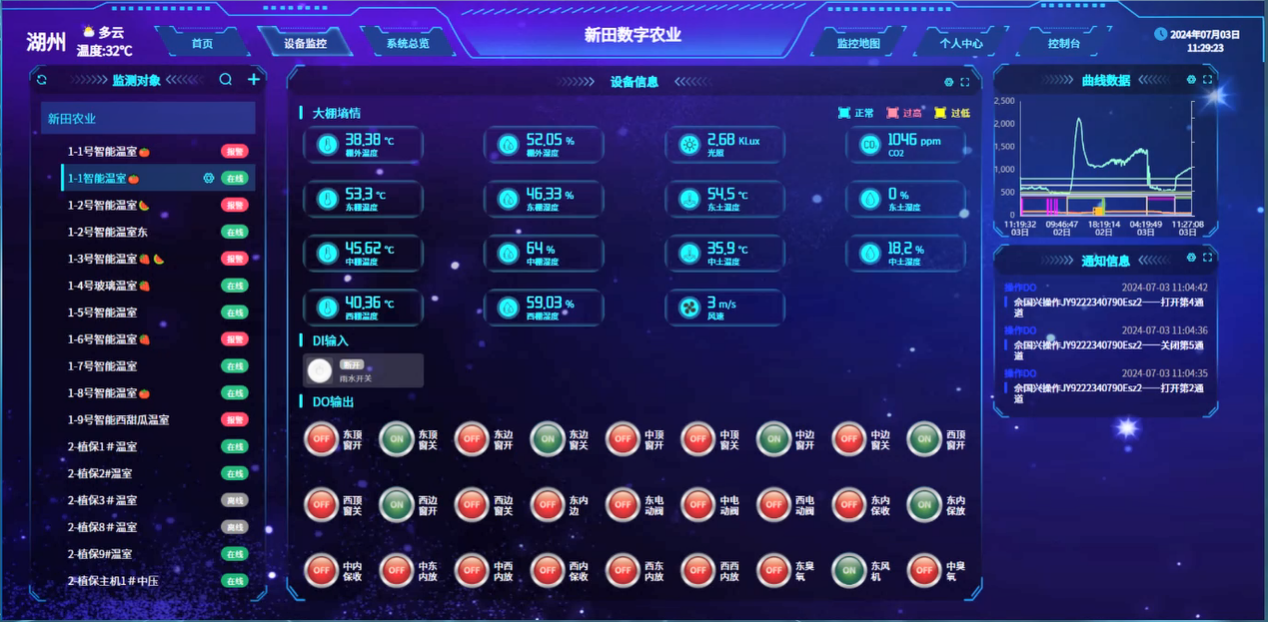 温度与湿度、光照、CO₂联动控制,避免单一控温导致高湿病害、徒长等问题,整体优化棚内小气候。