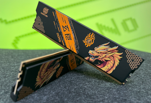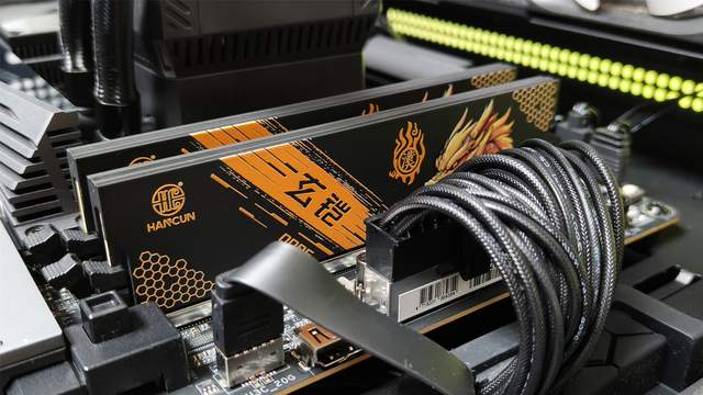 其次,当下确实犹豫内存太贵,我们只能拆机来凑,选的是之前入手的汉存玄铠6000 C28系列内存16GB单条版本,总共两条!这款内存特挑海力士A-die颗粒素质在线,全新分层架构设计的2mm铝合金散热马甲,配合着3M散热胶垫的设计,实际使用就算是我们超频使用实测也是非常稳定的。