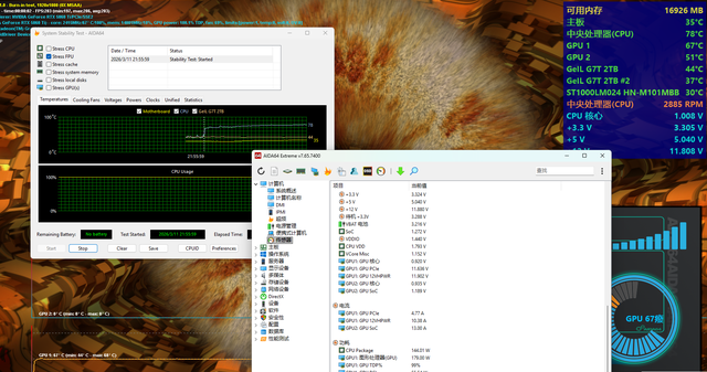 当然了,肯定也有小伙伴非常好奇技嘉RTX 5060Ti GAMING OC 8G魔鹰这款显卡实际烤机温度表现,我们直接利用Furmark以及AIDA64进行FPU Stress,我们总共进行10多分钟的烤机测试,室内温度约为25度左右,但GPU功耗稳定在180W上下,温度为67℃。