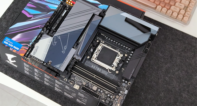 主板则是直接看中了技嘉的X870E超级雕,服务器级别的8层PCB设计,配合着两盎司的铜电路板用料确实感人,而且经典的AM5接口设计兼容性直接拉满;