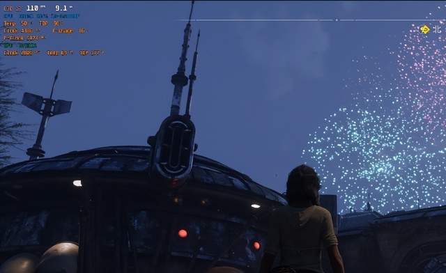 与此同时,我们还利用《星球大战:亡命之徒》这款游戏在使用使用最高画质预设和DLSS帧生成,实测其测试帧率能够达到110FPS,也算是进步显著了。