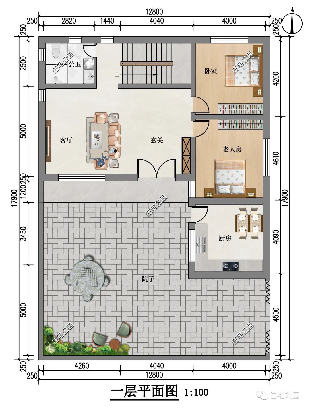 定制设计12×17米二层现代风小院,8米面宽大客厅采光通风效果好