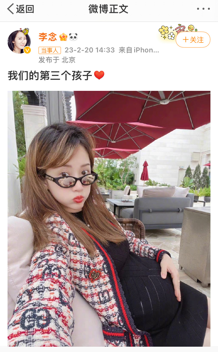 2011年两人在香港登记结婚,先后生了一儿一女。婚后的李念淡出了娱乐圈,过着富足的阔太太生活,相夫教子,如今,迎来了第三胎,恭喜李念。#李念官宣怀三胎#