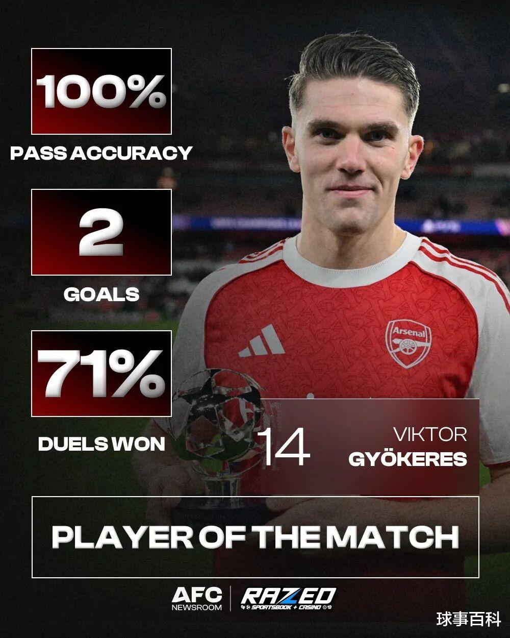 作为中锋,他的价值远不止于进球:7次地面对抗赢下5次,完成3次解围、2次球权回收和1次成功铲断,攻防两端存在感拉满。赛后,欧足联技术观察小组将全场最佳颁给了约克雷斯,并表示:“他凭借全场的出色表现获得这一奖项。他作为球队锋线的第一道防线积极逼抢,完美地引领了球队的进攻线,还展现出了出色的护球能力。他的努力付出得到了回报,收获了两个进球。”