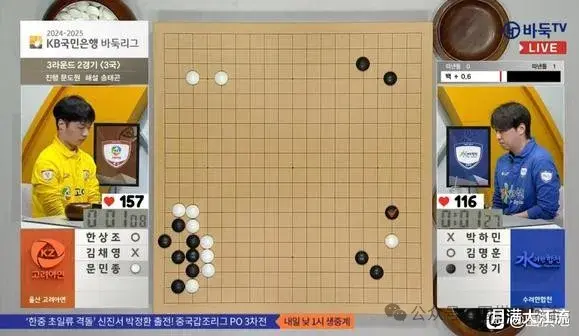 2024~2025韩国KB国民银行围棋联赛12月打响,新赛季联赛推出了一系列新变革,最重要的变革就是用时缩短为每方一分钟,每步增加10秒,将传统耗时的围棋变成了超速作战。比赛中骑手佩戴心率手环,观众可以看到实时心跳变化。