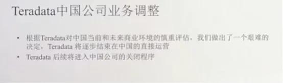 全球数仓巨头Teradata退出中国,命运再一次惊人的相似!说到Teradata曾经的辉煌,真是让人感叹。Teradata是一家有44年历史的老牌数据仓库企业,曾经是数据仓库的“一哥”,它在数仓领域的主导地位,相当于数据库领域的oracle。Teradata退出中国市场,一如当年oracle大规模裁员一般,引起了圈内的轰动。 但我认为,这些老牌巨头在中国的败退根源还是在技术上。现在的大趋势是云数据库厂商终将取代传统数据库厂商,oracle跌落神坛已经证明了这一点。而Teradata的退出与oracle如出一辙,它们都错过了搭乘云计算快车的黄金时机。2009年时,本土厂商阿里云就开始在国内带头自研云操作系统,而Teradata直到2019年才开始发展云计算。 一家科技公司跟不上最先进的技术趋势,结果可能是毁灭性的。Teradata、oracle被国产数据库抢夺市场份额,证明咱们是有技术实力打破数据库壁垒的。现在,全国60%省级医保信息平台、中国邮政、中国人寿都选择了阿里云数据库。在Gartner的评比中,阿里云数据库也是国内唯一、连续第三年入选该报告领导者象限的服务商。 接下来,还望本土云厂商再接再厉,补齐更多的技术短板!