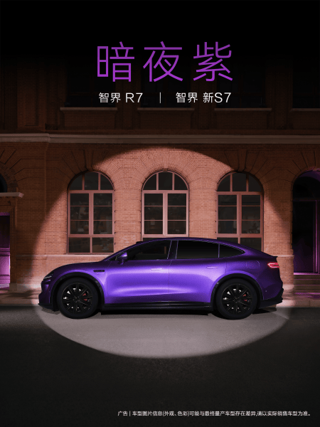 #智界R7/新S7首发暗夜紫新色# 近日,智界R7、S7继“活力橙”后推出全新车色“暗夜紫”,为产品阵容再添个性表达。