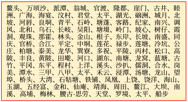 以下将广东真实城市中,区划不是正式的地市、县城者列出(具有独立性,与其他城市近似相连的不算!):