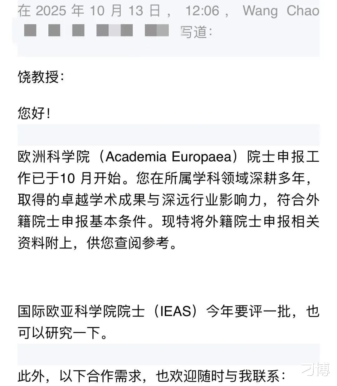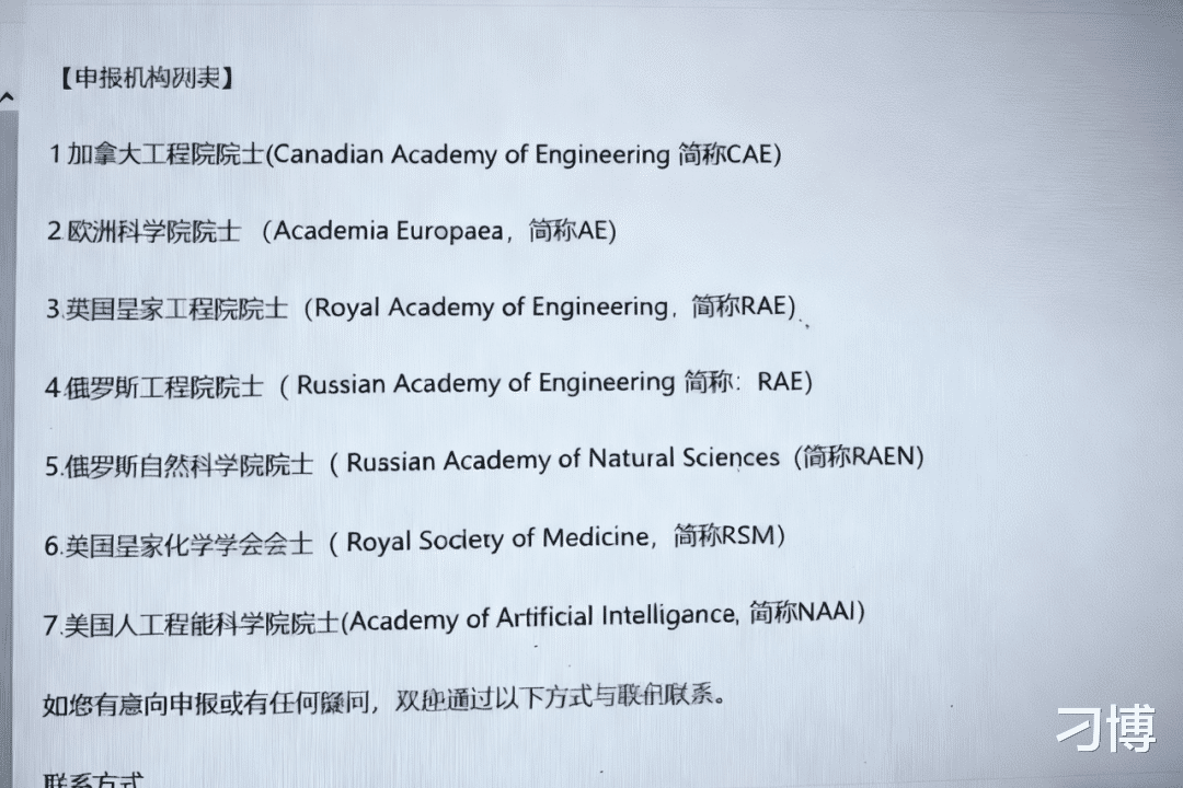 我有几位朋友最近也收到过推销院士申报服务的邮件。可申报的院士头衔除了和江苏科技大学首席科学家郭伟同款的“俄罗斯工程院院士”,比较眼熟的还有加拿大工程院院士、国际欧亚科学院院士、俄罗斯自然科学院院士、欧洲科学院院士、英国皇家工程院院士等。一大串吓人的头衔罗列起来明码标价,乍一看还以为是某夕夕在搞双十一大甩卖呢。