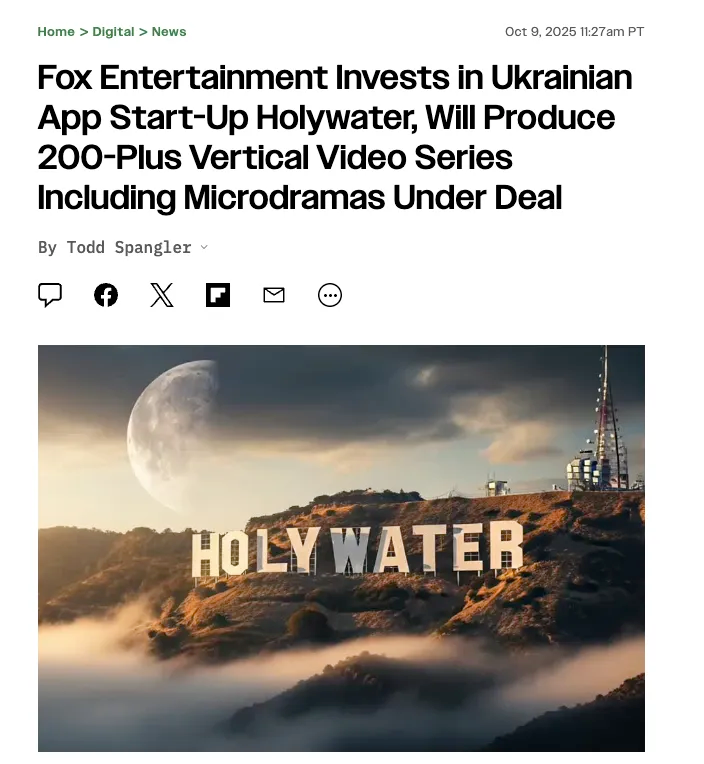 但短短几年间风向骤变:福斯娱乐直接投资乌克兰短剧公司Holywater,计划两年内为其My Drama平台制作200多部竖屏剧;米拉麦克斯影业CEO拉着合伙人成立罪案短剧平台Gammatime,投资人名单里还出现了金·卡戴珊;迪士尼更直接,把中国短剧出海平台Dramabox纳入内容孵化计划“加速器”,要对接各个内容部门合作;连美国AI视频生成平台Cineverse都凑了热闹,成立短剧工作室MicroCo,挖来迪士尼、米高梅的前高管当CEO。