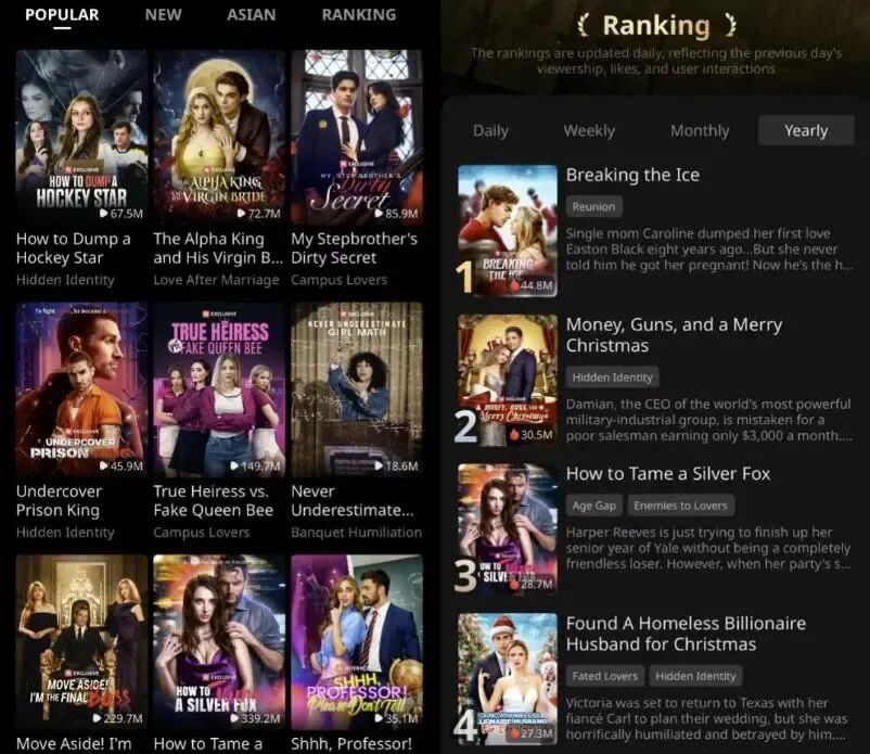 同时还有中国短剧的“示范效应”,给好莱坞指了明路。现在北美做短剧做得好的平台,背后几乎都有中国公司的影子:ReelShort的母公司中文在线,早年靠网文出海平台Kiss/Scream打开市场,还通过图文互动小说平台Chapters过渡到短剧;