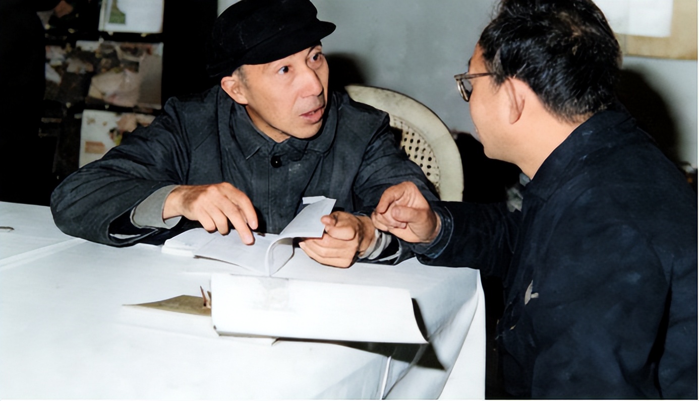 夏鼐(左)与彭隆祥在进行业务探讨(AI复原上色)