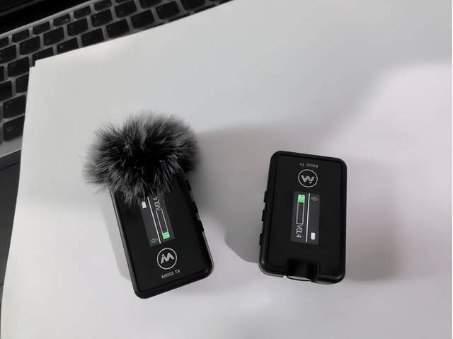 麦克风和接收器都比较小巧,通体黑色,正面印有麦拉达的logo和一块小OLED显示屏,可显示当前录制状态、电量等信息。这款麦克风有“一拖二”的版本,两个发射器共有100个信道可供选择,接收器的顶部则是音频输出接口和耳机监听口,有耳机监听功能,能让使用者更好地掌握录音的节奏和实时调整录音的状态。