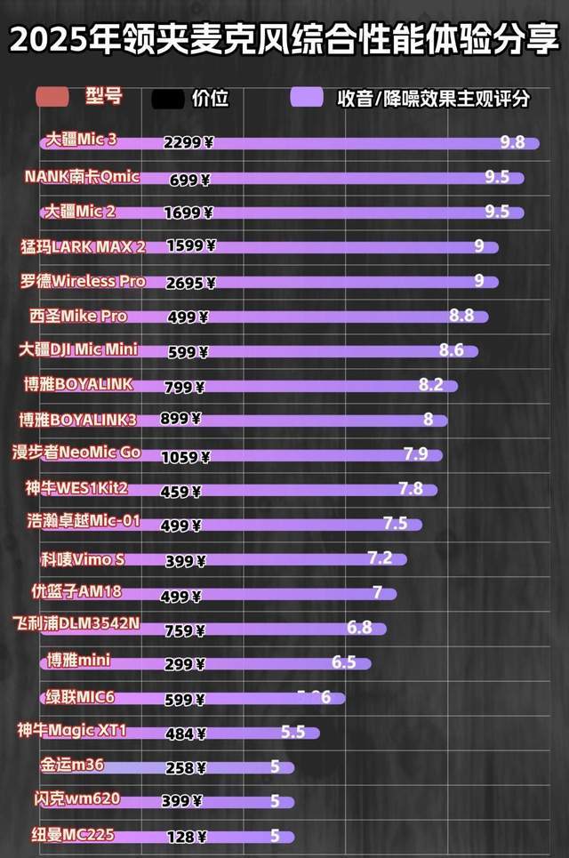 看完这几条选购技巧,想必大家已经对如何挑选麦克风有了一定的了解,下面介绍十款市场口碑较好的无线领夹麦克风。