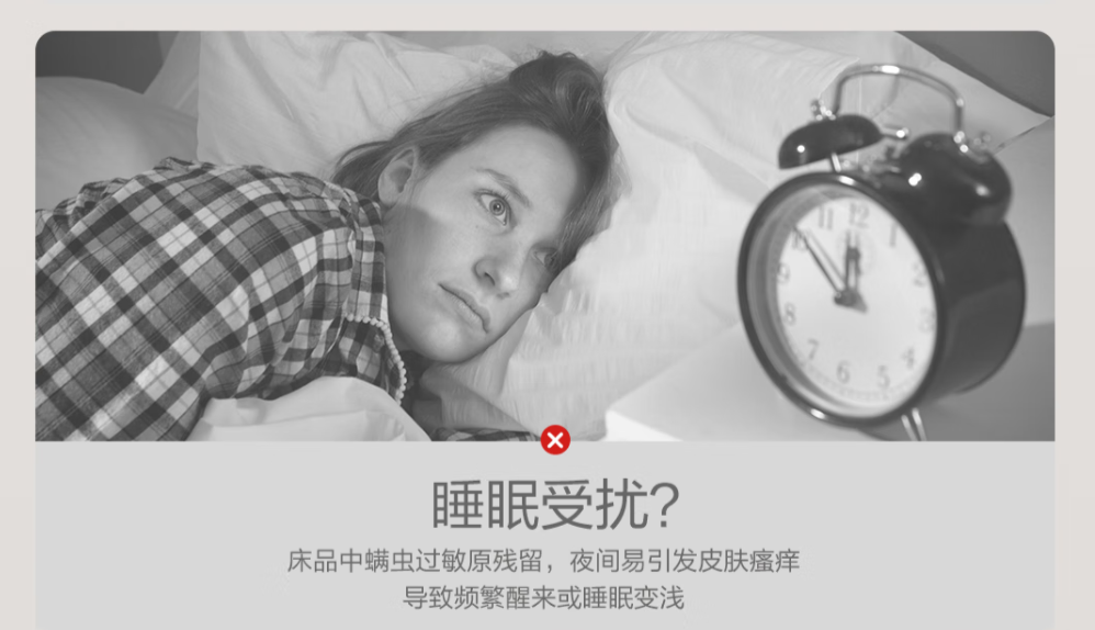5. 床品有异味、晒后仍不适:刚换没多久的床单被套,凑近闻能闻到一股淡淡的“霉味”或“灰尘味”,就算在正午太阳下暴晒几小时,铺上床后还是觉得皮肤发闷、不舒服。这是因为螨虫大量繁殖后,尸体和排泄物堆积在织物纤维里,单靠暴晒只能杀死部分螨虫,根本无法清除这些残留物。