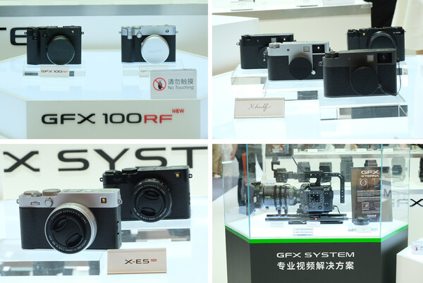 此次亮相的重磅新品包括适合专业创作的中画幅固定镜头相机 GFX100RF——搭载1.02亿像素 GFX 102MP CMOS II 传感器与 X‑Processor 5 图像引擎,且为当前 GFX 系列中最轻,仅约735g,突破性加入了画幅拨盘与精密铝合金顶罩设计;全新快拍神器 X half,继承传统胶片半格之美,支持2 in 1创意拼接与丰富滤镜,仅240g轻巧便携;以及兼具经典复古与现代性能的类旁轴轻便无反相机 X‑E5,配置五轴 IBIS 防抖与 4020 万像素传感器,提供高感画质与翻转屏拍摄便利。此外,现场还展出了富士胶片旗下首款电影级中画幅摄影机样机 GFX ETERNA,面向电影制作领域展现中画幅质感与视频录制能力。