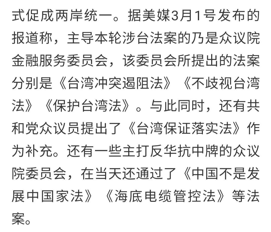 美国众议院一口气通过8部针对台湾修正法,可谓让人笑掉大牙,牛皮吹上天,完全属于众议院这帮没从过正的众议院议员自嗨。 想把牛皮吹的更洪亮,立个把东方大国逐出联合国,那牛皮才吹的响亮。笑死个人,还把中国逐出G20,真是背着唢呐坐飞机。 警告美国,台湾是中国不可分割的一部分,一寸都不可以少,如果胆敢越雷池一步,台海就是美帝的鱼饵场。