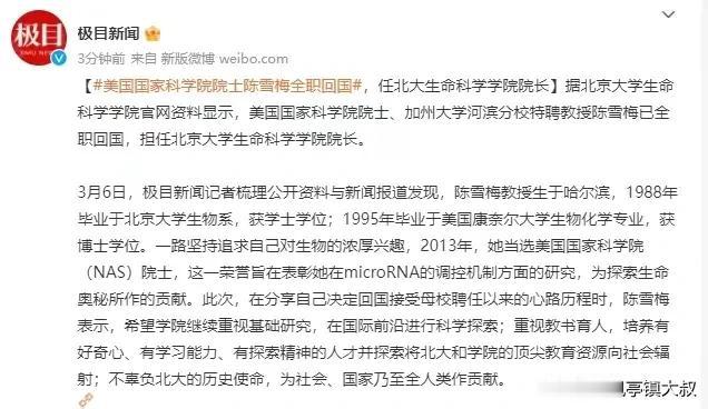 华裔科学家回到祖国的怀抱,才能发挥出最大价值,因为有母亲帮温暖的呵护! 自从特朗普时期,对华裔科学家,猜忌,打压,跟踪,监听,搞了个“中国特别行动计划”,成立美国东厂锦衣卫-FBI特别行动组,抓捕那些高精尖领域的华裔科学家,称消灭中国间谍,防止美国科技被中国盗取。即止制造了大量的冤假错案。 大肆滥捕使得华裔科学家人人自危,2021年至少有1400名华裔科学家逃离美国,返回中国做研究。 眼看效果适得其反,2022年美国紧急叫停中国行动计划。 虽然计划叫停,但明眼人知道,这由公开转为地下,搞秘密跟踪,窃听,此举已经让华裔科学家从空气中都能感受到威胁。美国这个鼓吹了200年的民主灯塔国,已经显现出虚伪的人权獠牙。为了遏制中国美国不惜一切代价,打击华裔科学家,中国留学生手段已然到了无所不用其极,压缩中国研究生签证由五年改为一年,然而,几十年来,中国一直是美国科学家最重要的人才供应国。 举列,2020年的所有美国理科博士学位中,17%是来自中国的留学生获得的。这些中国留学生中,又有大约87%毕业后留在了美国,形成了美国S/E劳动力的重要组成部分。事实证明大张旗鼓搞中国留学生、华裔科学家算是得不偿失,这也是美国叫停中国行动计划的根本原因。 计划终止同月,美国众议院又通过“2022年美国竞争法案”,让更多从事生物医药、半导体、人工智能等领域的华裔科学家丢了饭碗。 中国当然知道人才重要性,出台了“海外科技人才引进计划”,国家的盛情邀请下,不少顶尖科学家被吸引返华,这些专家中有制造出世界上第一台光量子计算机的团队领头人潘建伟,有航空地球物理学家黄大年,也有西湖大学校长施一公等。有深圳医学科医学院院长颜宁。 和美国的人才竞争依然会持续,流淌着中华血脉的华夏儿女,中国随时欢迎你们回家。