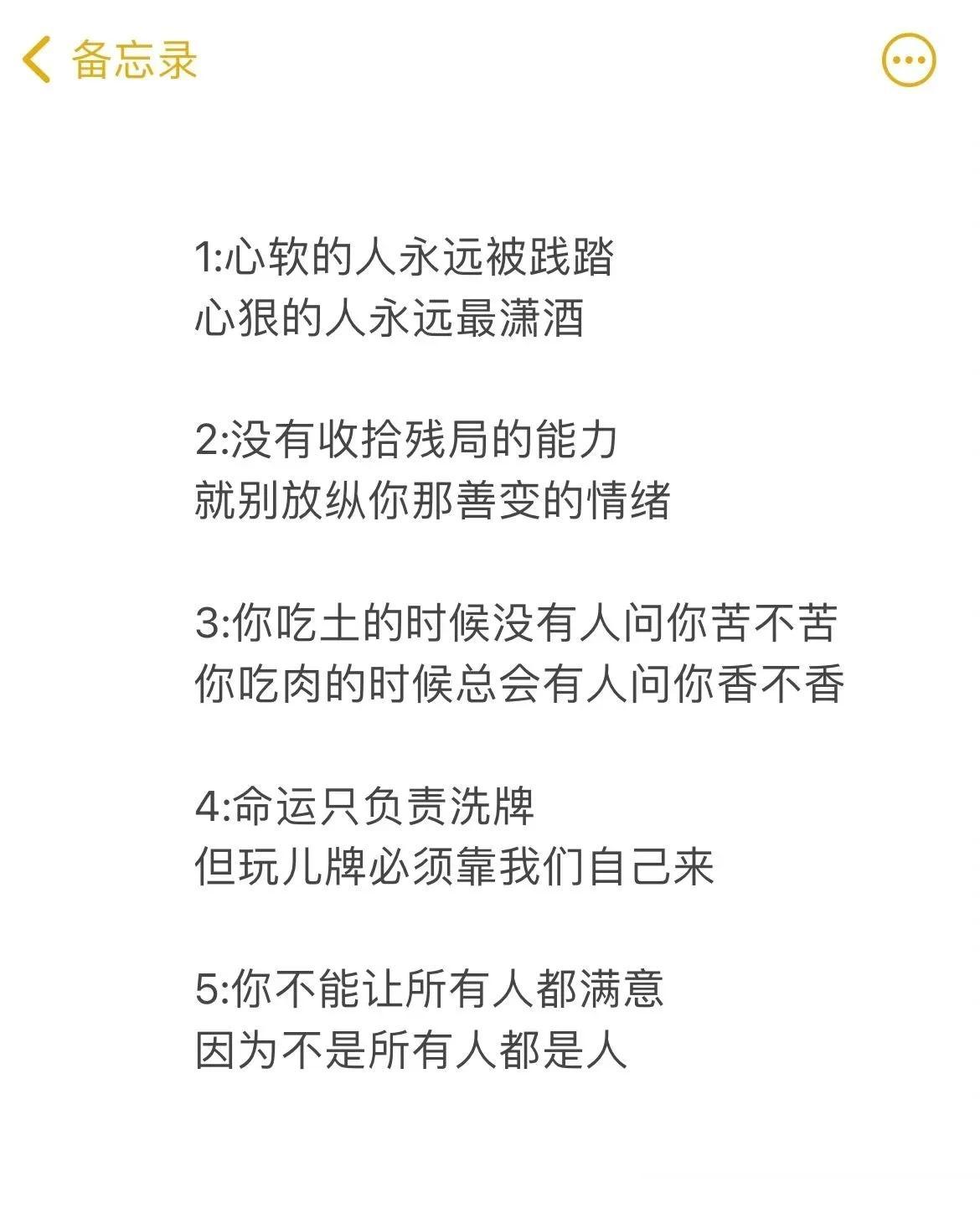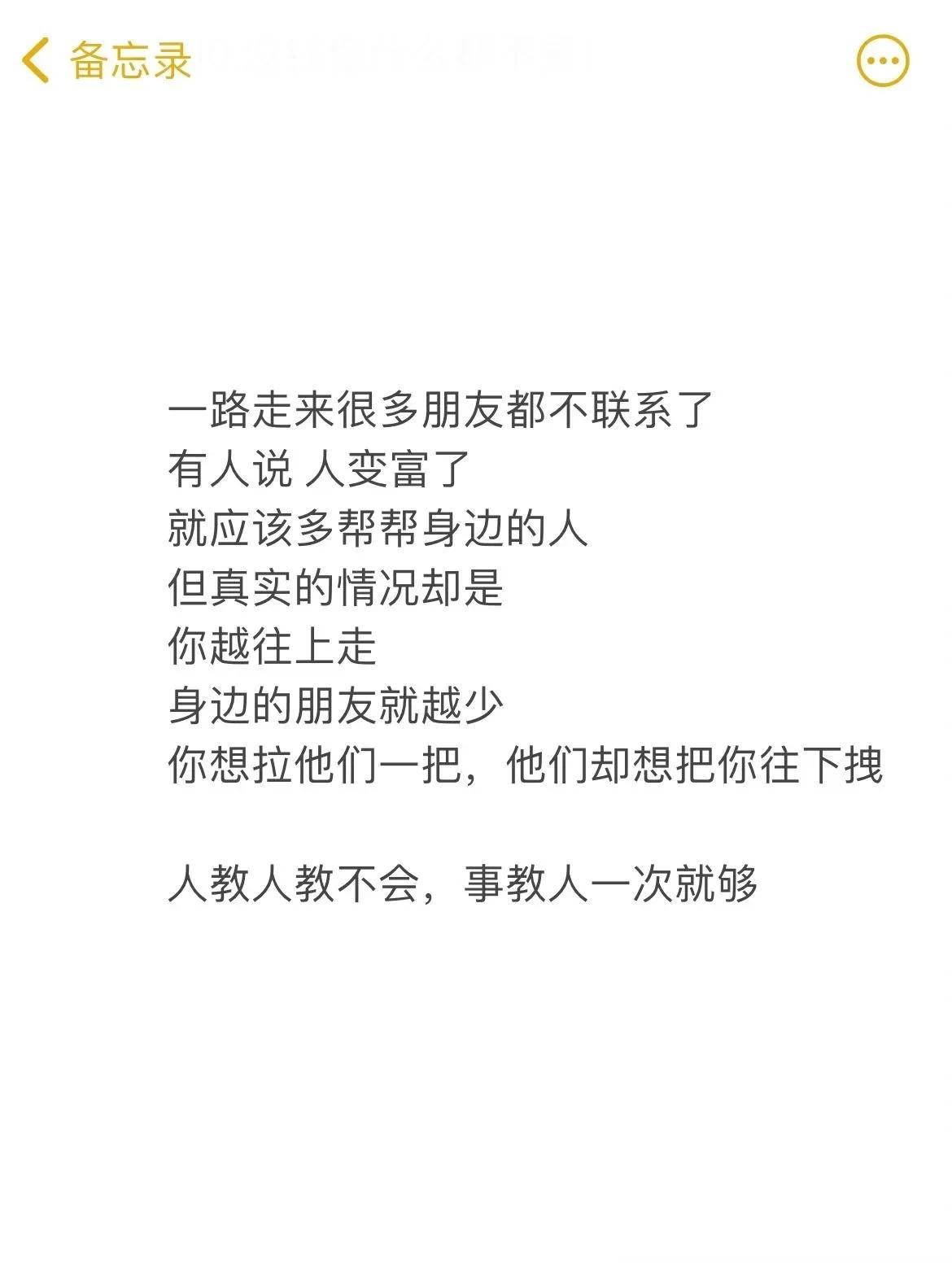 广东深圳,一位历经人生起伏、人间冷暖的男子,在网上分享了10条很脏但很现实的感悟,引起了网友们的感同身受。 原来他说人生起伏,境遇各不相同,再重逢有人在高山,有人在低谷,能述说的都只是琐碎和日常,真正的孤独却难以启齿。那些曾经的经历已成人生财富,因为它们改变了我的信仰:我相信人,但我不再相信人性。 @众生百态集 没一定的社会阅历、人生经验,看到这些文字不可能感同身受。还是那句老话来的经典:人教人教不会,事教人一次就会。