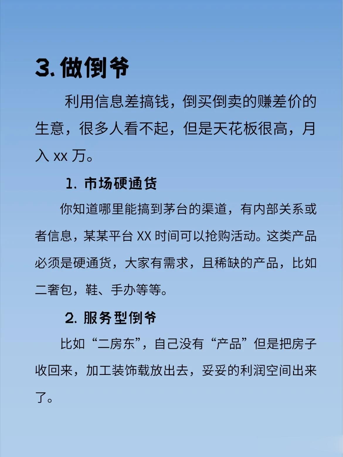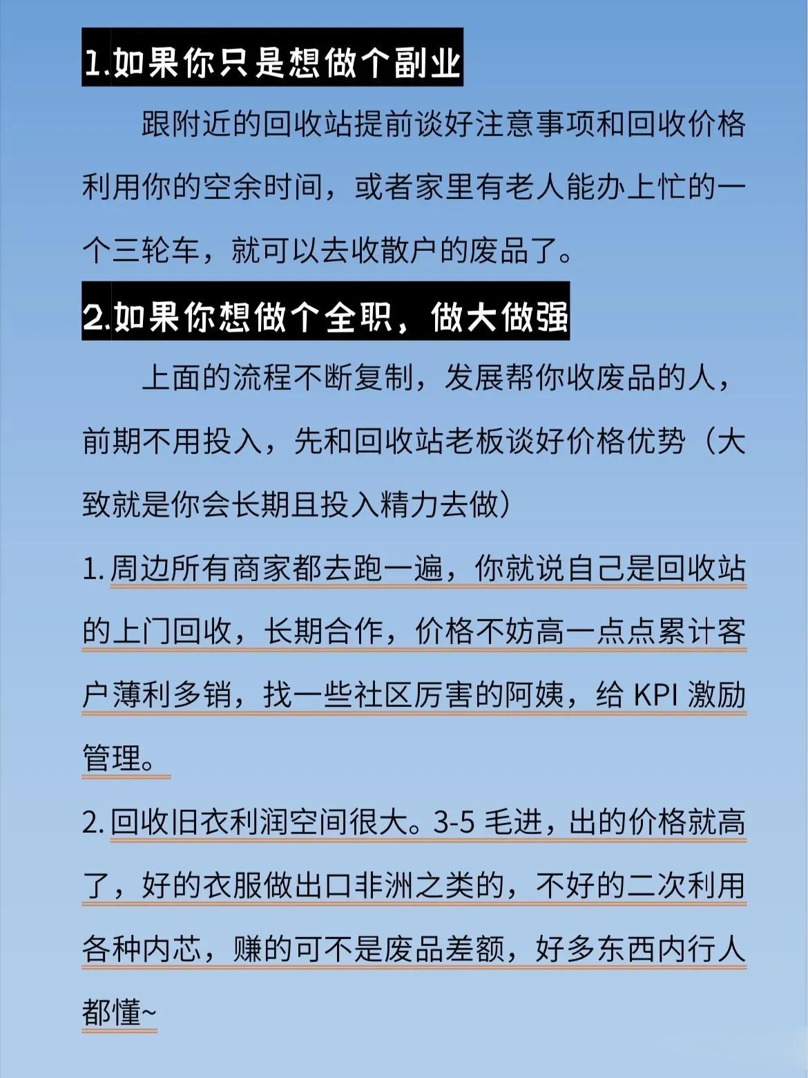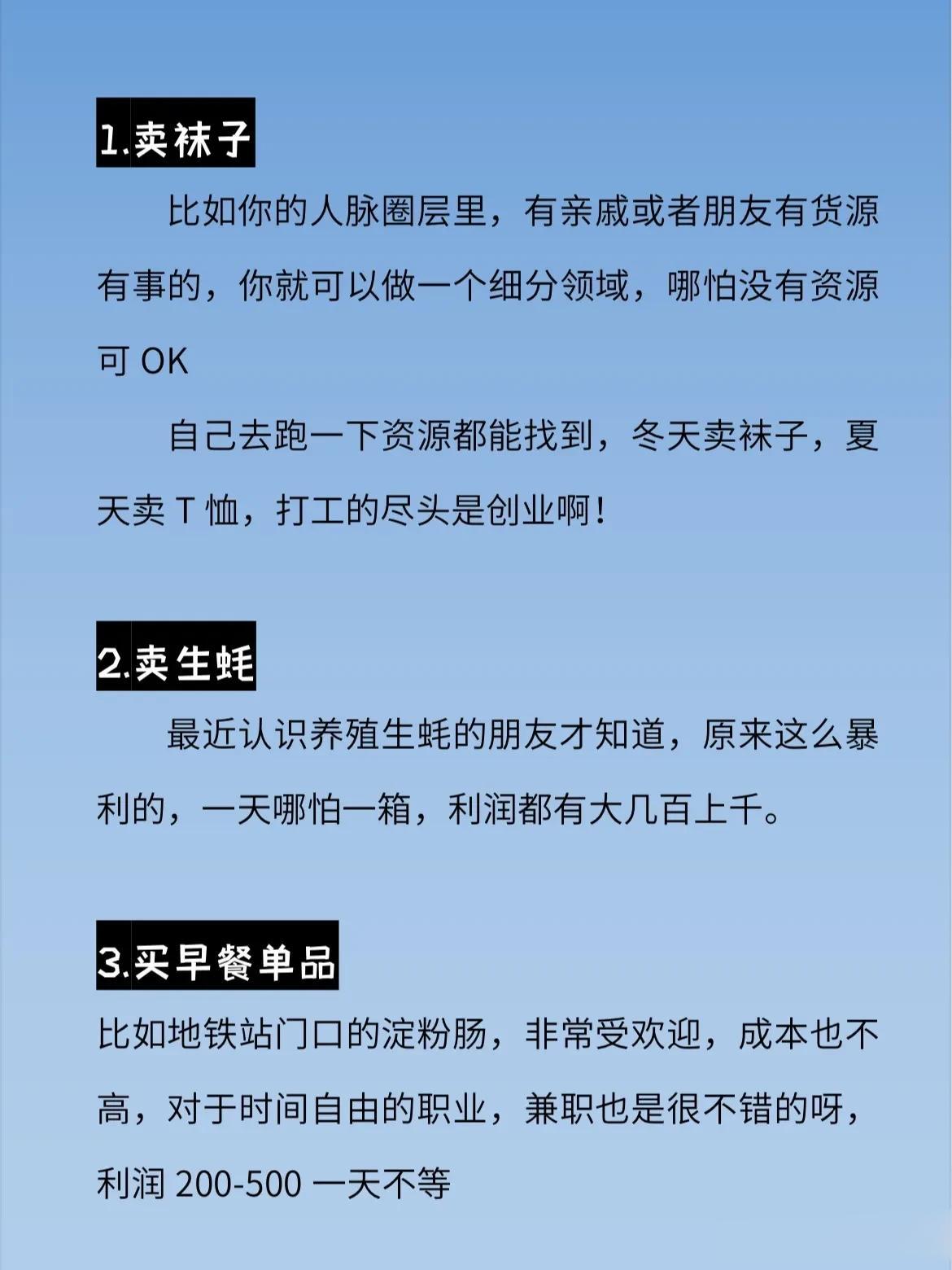 吉林长春,一位创业达人,在网上分享了“那些不体面的生意往往才是最暴利”的观点,引起了网友们的广泛热议。 原来他说很多时候我们看不上摆地摊的,看不起收废品的,其实去默默观察,他们很多家中房产好几套,开豪车。虽然这些行业不体面不光彩,但是确实是实在的赚钱行业,不需要太多或者太高的天赋,更适合我们这样大多数的普通人。 @众生百态集 生意不分贵贱,赚到钱才是王道,作者分享的这几种行业,只要愿意干,能吃苦,绝对吃喝不愁。