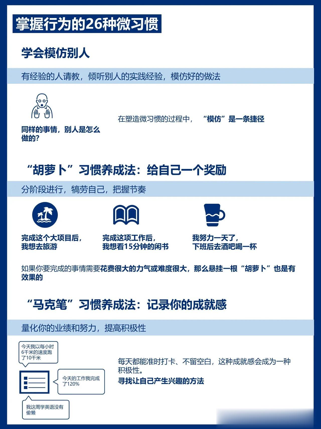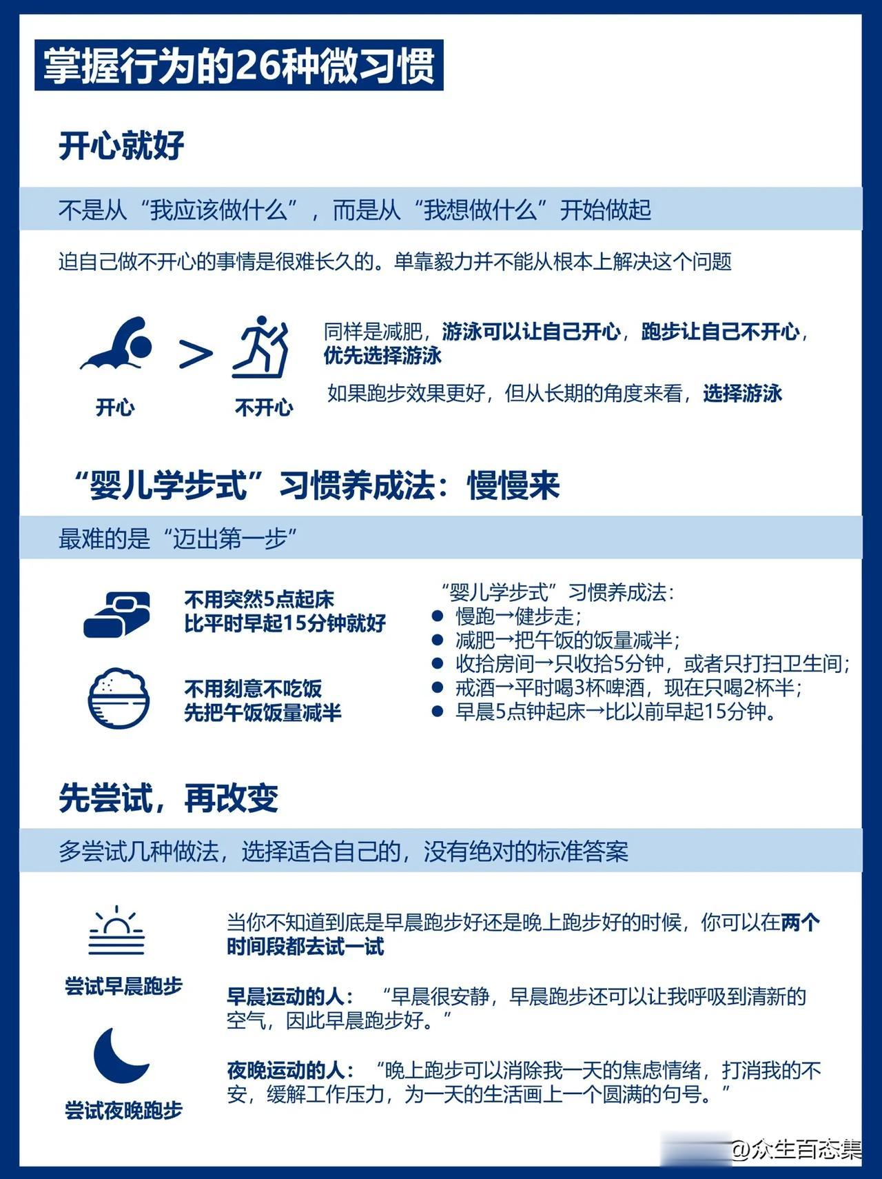 首都北京,一位好习惯养成大师,在网上分享了“从长期摆烂到恢复巅峰,只需要掌握26种微习惯”,看完不得不说挺实用的,强烈推荐。 原来他说他有一段时间失业在家里,每天玩手机的时间在10小时以上,其余的时间就是吃饭睡觉、一天什么事情都没有但是还是很累。就这样在焦虑、摆烂、内耗中持续拉扯,让自己越来越焦虑。这期间也尝试着做出改变,但总是无法付出实际行动。后来经过不断总结,发现要摆脱这种状态,只需要掌握26种微习惯就行。 @众生百态集 长期摆烂是不可取的,对自己也好,对身边的亲人也好,都是一种极不负责任的事情。作者分享的这26种微习惯,很有价值,干货满满,实操起来挺方便的,值得收藏。