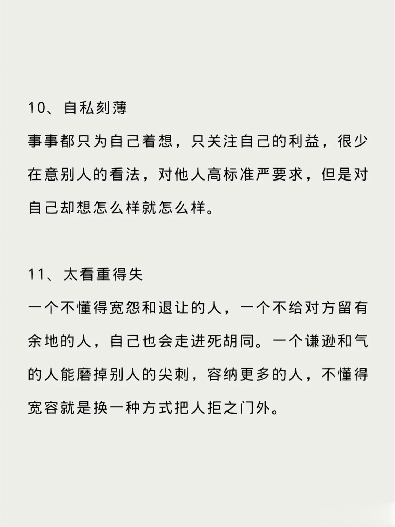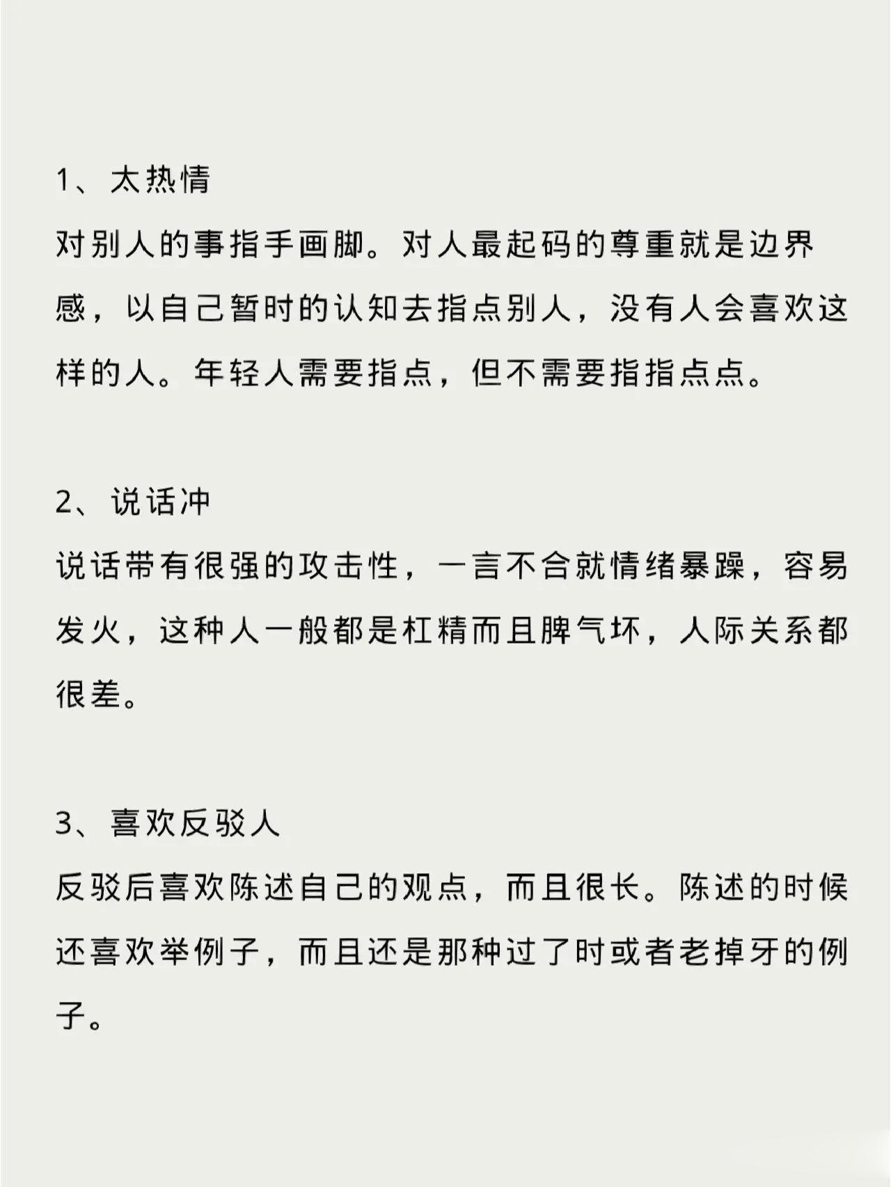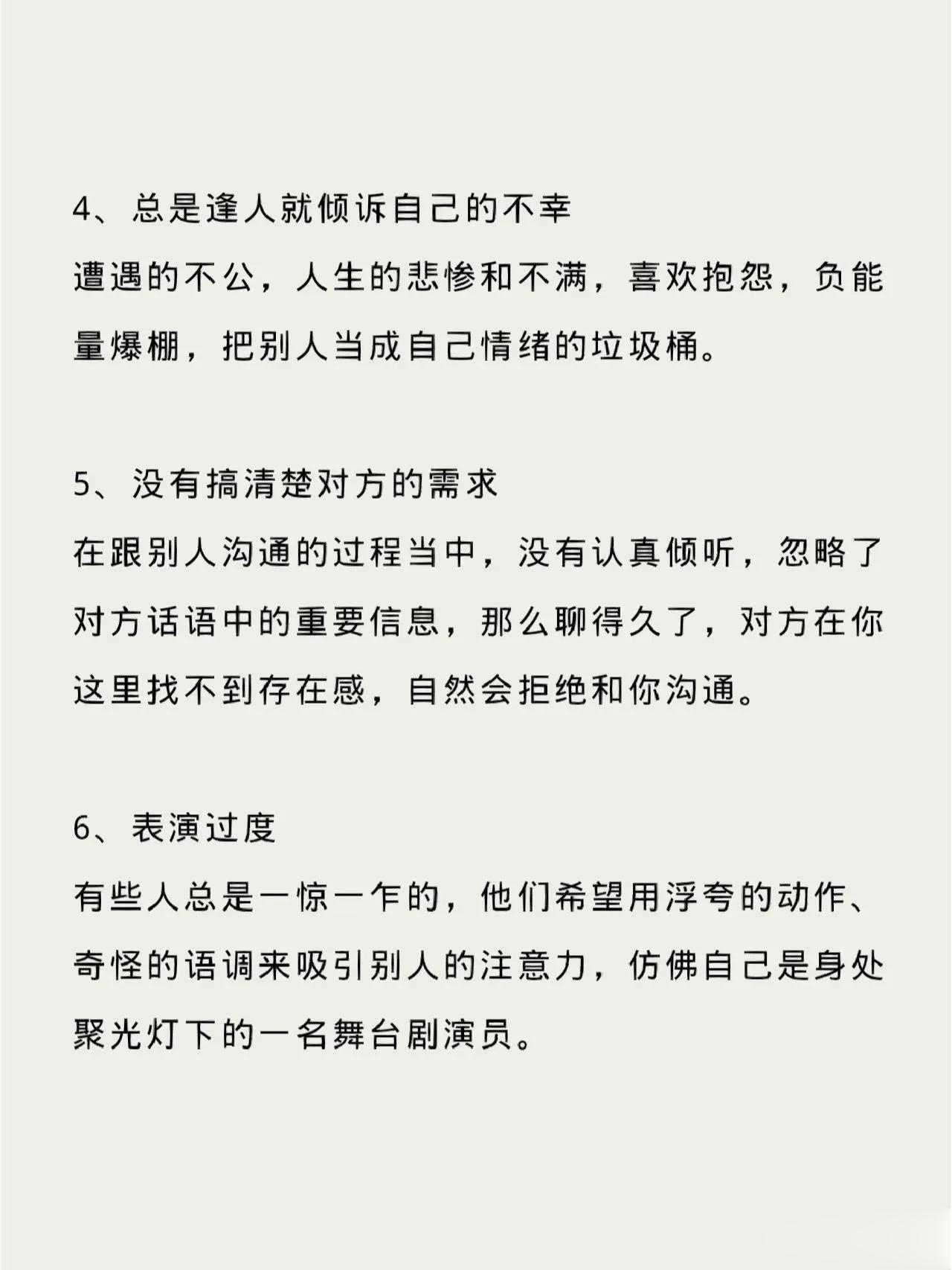 陕西西安,一位专注于自我成长和认知提升的男子,在网上分享了11条能把人际关系越处越烂的原因,引起了网友们的广泛热议。 原来他说人作为社会性动物,一生要花大部分时间处理与他人的关系,人际关系的好坏较大程度上决定了一个人的幸福度。虽说人之初,性相近,但由于后天的成长环境不一样,每个个体的性格、习性也会各不相同。因此,如何处理好人际关系就成为了一门学问,但无论怎样,有一些禁区是不能碰的,分享11条能把人际关系越处越烂的行为,一定要警惕。 @众生百态集 人类的烦恼,全部都是人际关系的烦恼;而人类的幸福,也全都是人际关系的幸福。人与人交往的过程就摸索彼此继续来往的分寸,这11条就把这个分寸分析的很到位。