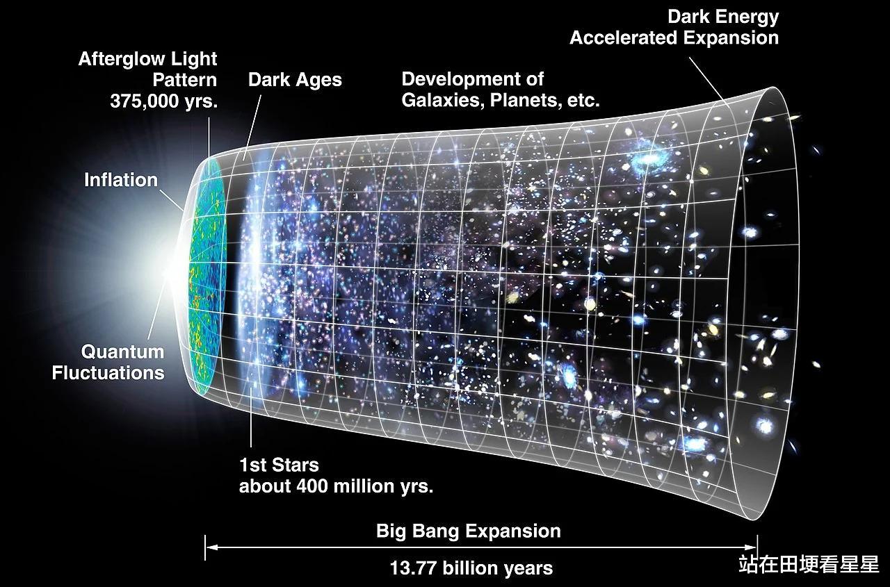 20世纪初,爱因斯坦的广义相对论预言宇宙不是静止的。但包括爱因斯坦本人在内的大多数科学家,都更倾向于一个永恒不变的宇宙。直到1929年,美国天文学家埃德温·哈勃通过观测发现,遥远的星系正在远离我们,而且退行速度与距离成正比。这就是著名的 “哈勃定律”。