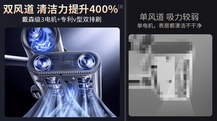 核心优势:16000Pa吸力+60000次/分钟拍打+500W大功率