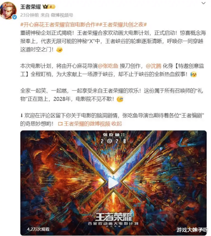 王者荣耀和开心麻花联动,将合作推出电影,沈腾也参与其中