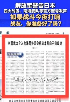 对此,我国四大战区相继发布了备战视频,明确警告日本若持续踩踏我国跨越红线,我们将奉陪到底。